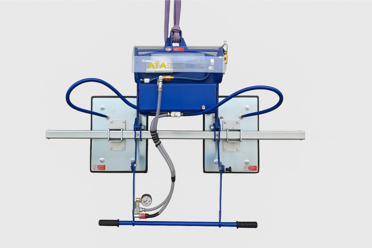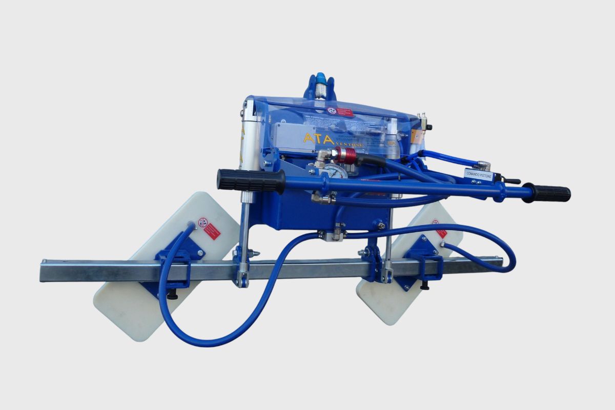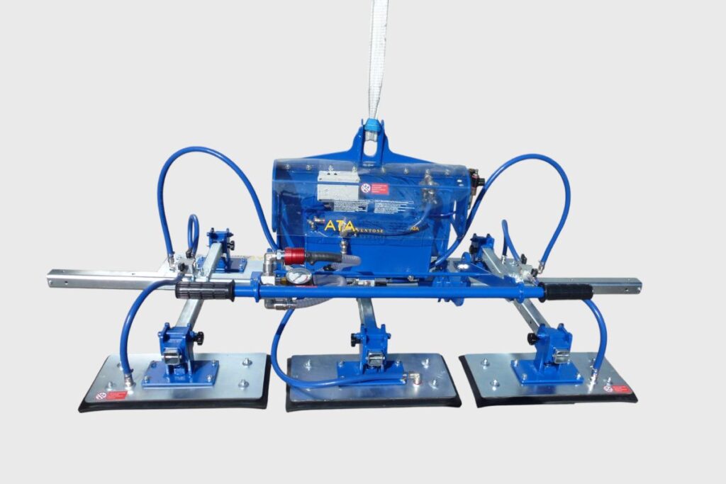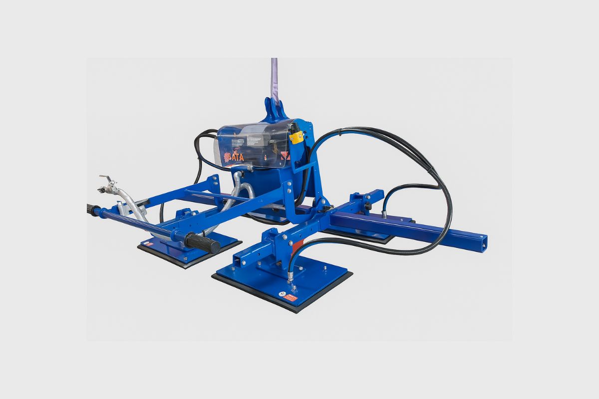 Ventosa con alimentazione elettrica o autonoma a batteria dotata di quattro piastre aspiranti posizionate su due croci mobili, regolabili lungo il tubolare principale. Questa tipologia di ventosa è particolarmente indicata per lamiere di dimensioni medie e con spessore fine. Le piastre aspiranti sono dotate di supporti a molla per agevolare la presa.