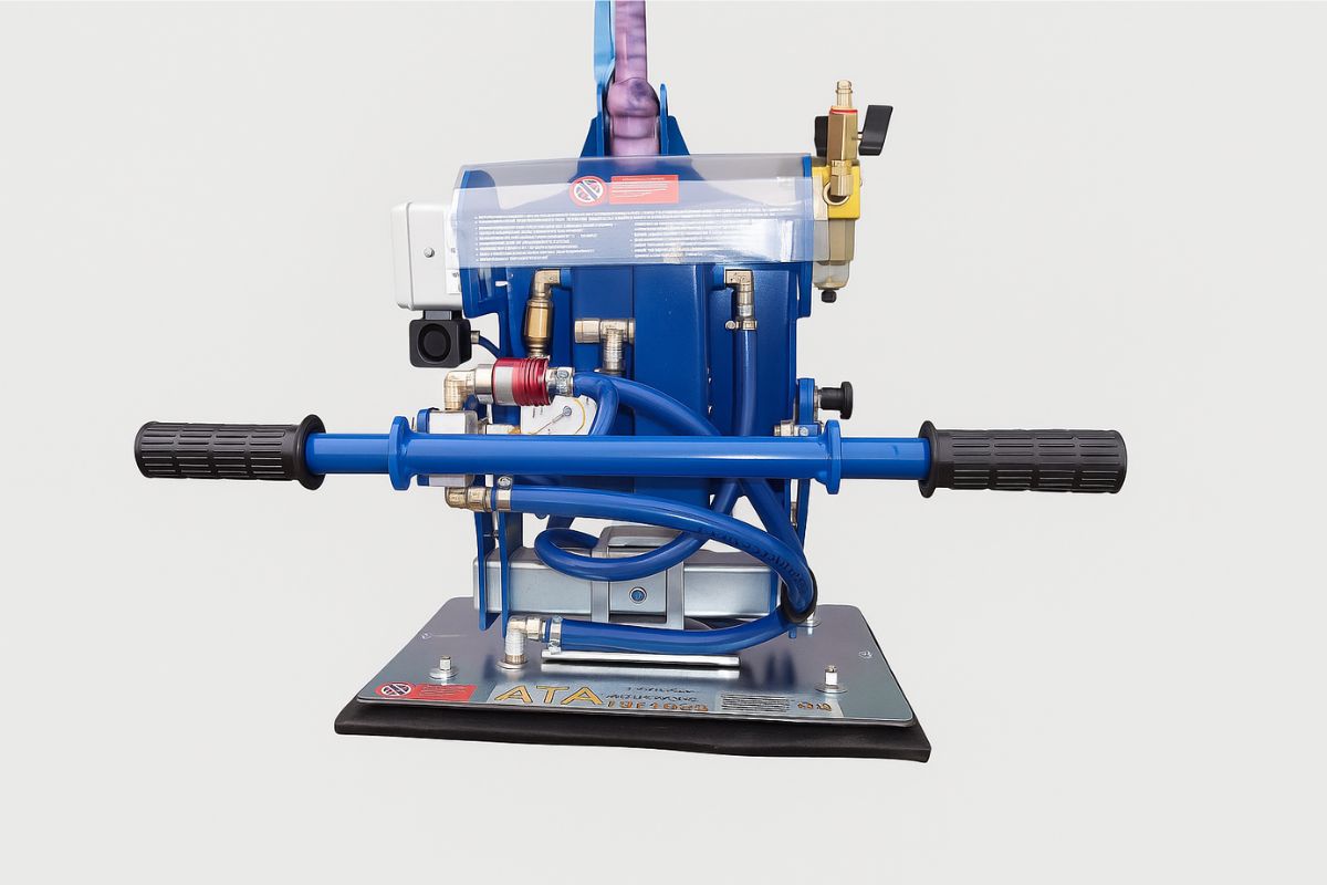 Questa tipologia di ventosa è alimentata da una pompa elettrica separata e collegata alla struttura tramite un tubo del vuoto. Il gruppo pompante separato può essere installato sulla struttura della gru o del carroponte.