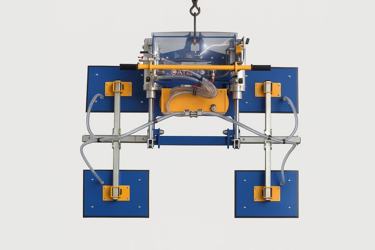 Ventosa dotata di quattro piastre aspiranti posizionate su due croci mobili, regolabili lungo il tubolare principale. Questa tipologia di ventosa è particolarmente indicata per lamiere di dimensioni medie e con spessore fine. Le piastre aspiranti sono dotate di supporti a molla per agevolare la presa.